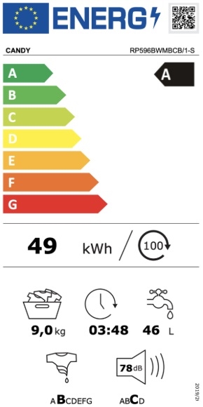 Med en vaskekapacitet på 9 kg kan du med RP596BWMBCB/1-S fra Candy vaske 5 - 6 sæt tøj på en gang, så du ikke skal bruge mere tid end højst nødvendigt på vasketøjet. Du får et komplet sæt af hurtige cyklusser designet til at imødekomme daglige vaskebehov. Denne vaskemaskine er den bedste løsning til at få mest muligt ud af din tid og penge bl.a. fordi den har 9 hurtige programmer.
