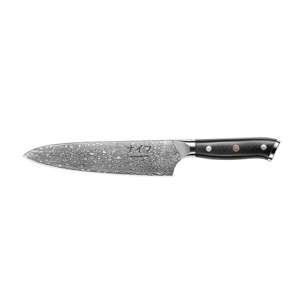 Det lange blad gør den ideel til alsidige opgaver som hakning, snitning og udskæring, og den leverer hver gang med præcision og kontrol. Klingen er fremstillet i 67 lag smedet Damascus-stål, som giver et unikt bølgemønster og en imponerende holdbarhed.