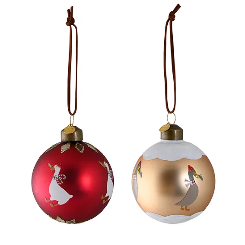 Det Gamle Apotek Julekugler 2 stk. Glas - Gæs Ø7cm.