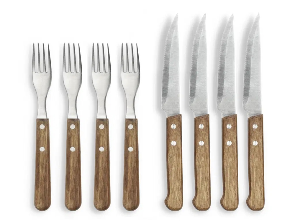 Lækkert steak bestik med skafter af akacietræ