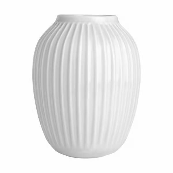 Vasens karakteristiske riller, inspireret af den danske maler Svend Hammershøis værker, tilføjer et sofistikeret touch til din indretning, der aldrig går af mode.