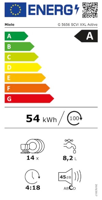 Bedømmelse for Miele G5656 SCVi XXL Active Opvaskemaskine - integrerbar