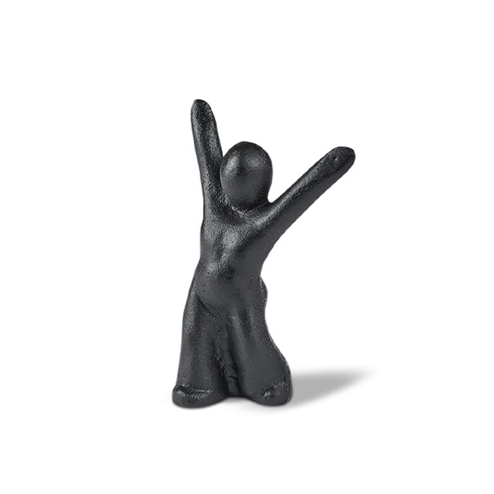 Tilføj et strejf af kunstnerisk elegance til din boligindretning med denne charmerende skulptur i støbejern fra Morsø. Den charmerende mand med armene over hovedet symboliserer glæde, energi og en hyldest til at leve i nuet. "Du gjorde det! Nyd dit nu lige nu! Det er stærkt!".