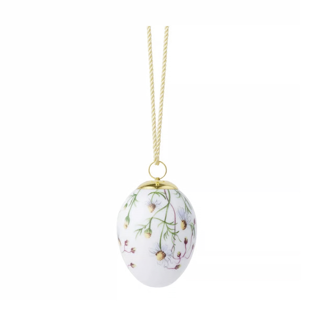 Kamilleblomster slynger sig poetisk om dette æg fra Royal Copenhagen og giver forårspynten et lyst og livligt udtryk.