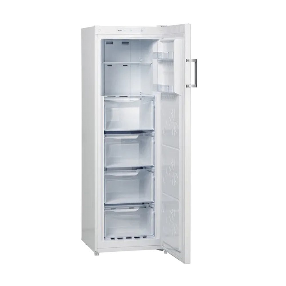 Klassisk hvidt fryseskab på 206 liter med NoFrost og overskuelig pladsopbevaring i skabets 4 skuffer, 2 hylder og små dørhylder. Med NoFrost teknologi sparer du både tid og penge, fordi du slipper for at afrime fryseren og fordi den ikke iser til som konventionelle frysere gør. Det fritstående fryseskab kommer med justerbare fødder, så det kan stå plant på alle underlag. Skabsdøren åbnes til højre, men døren kan også vendes, dermed er skabet fleksibelt at placere i alle rum. Dette fryseskab kan stå i et tørt miljø ved en rumtemperatur ned til -15° C.