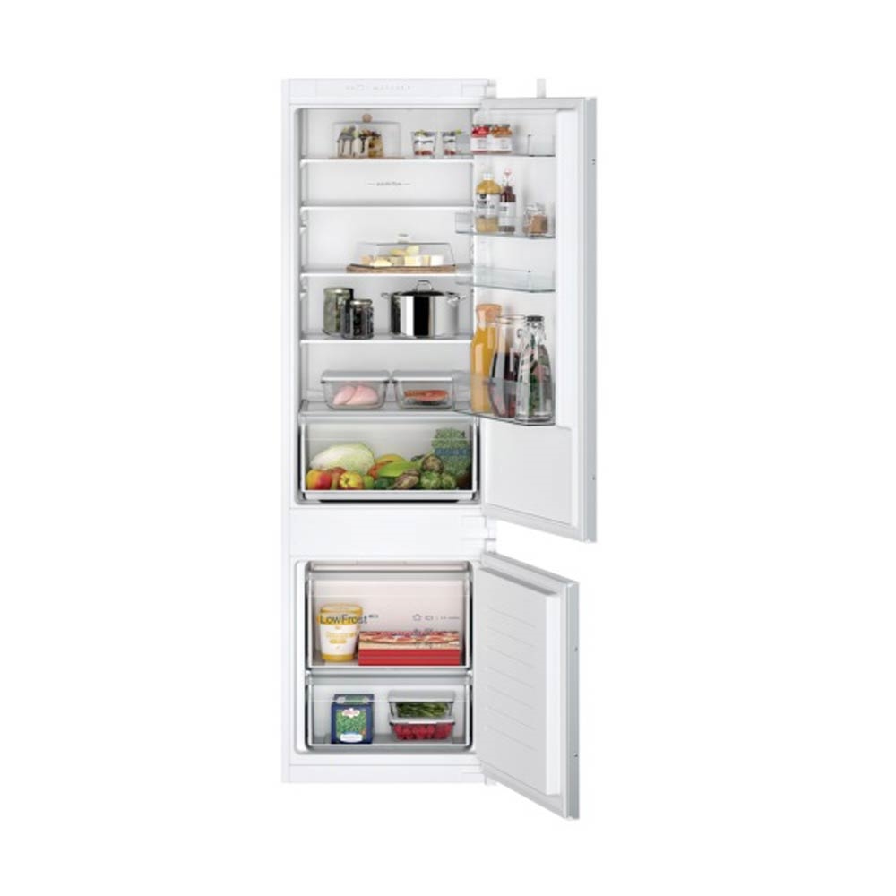 Integrerbart køle-/fryseskab med LowFrost for mindre afrimning.