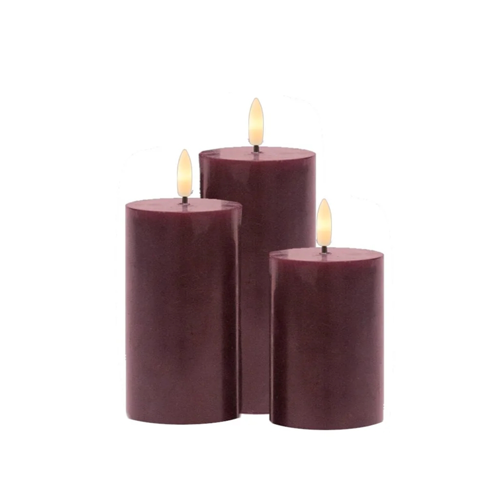 Sirius Sille Genopladelig Bloklys - Bordeaux - Ø7,5 cm - 3 stk.
