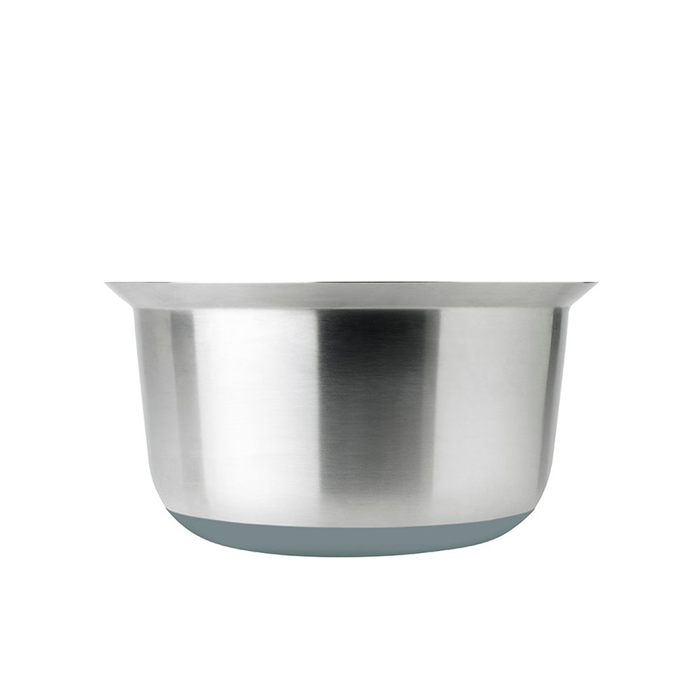 Denne 2,5 liters røreskål fra RIG-TIG's mix-it serie kombinerer funktionalitet og æstetik på elegant vis. Med en blød, grå silikonebund står skålen solidt på bordet uden at ridse, mens det blanke rustfri stål stråler af tidløs elegance.