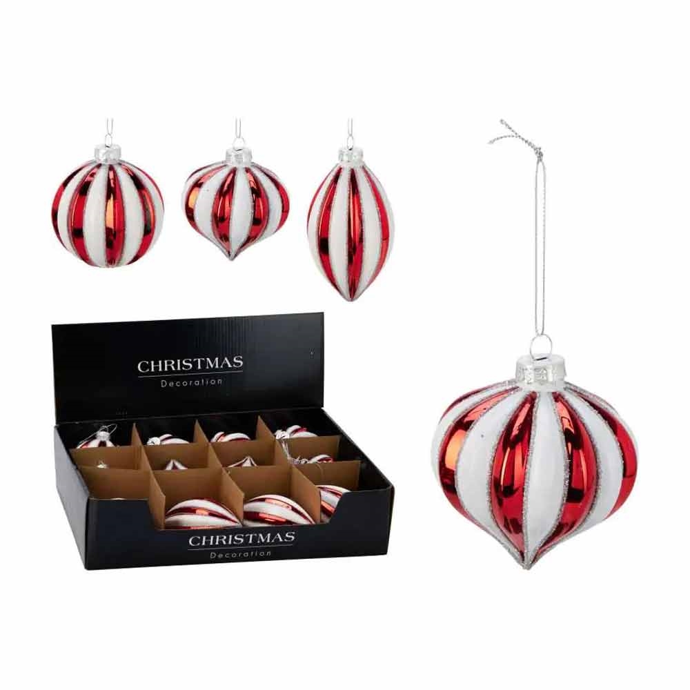 Xmax Julekugle rød og hvid hård plast - assorteret form